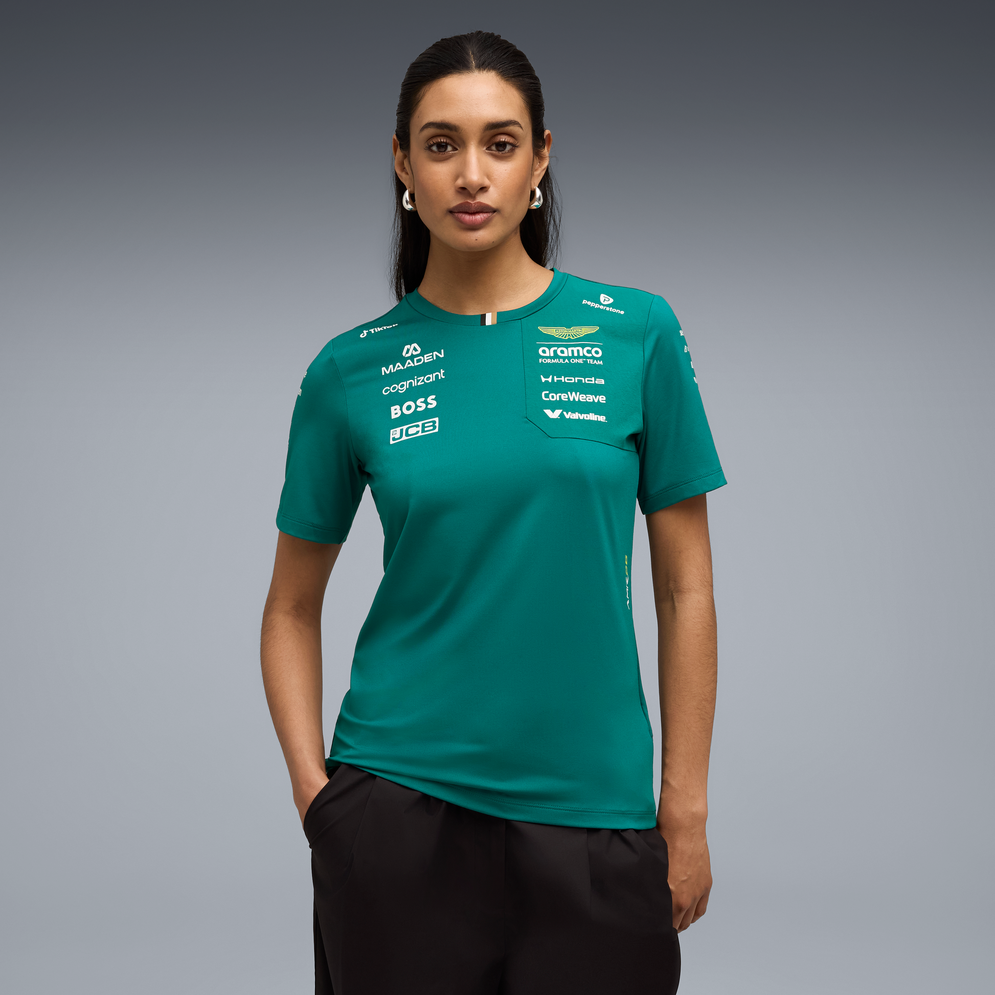 Support the 2026 season in style with the Aston Martin F1 Team 2026 Tee for women in Green Lux. Designed for comfort and a flattering fit, this official team T-shirt features a classic crew neck, modern cut, and Aston Martin Formula One Team branding, perfect for race days, casual wear, or everyday motorsport-inspired style.