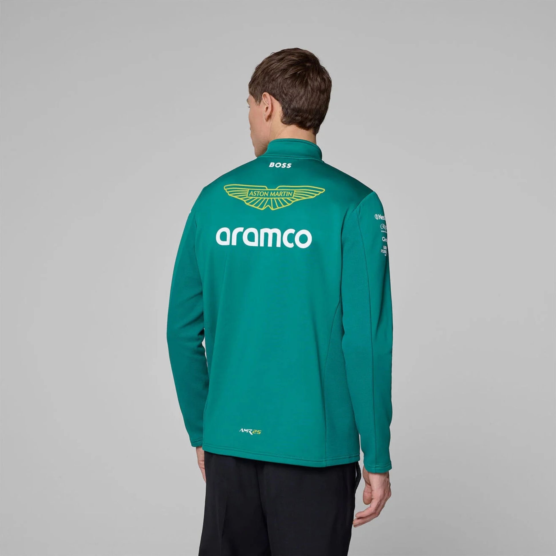 Back with a new design for 2025. The Aston Martin F1 Team 1/4 Zip remains one of our favourites. This ever-versatile sweater is perfectly paired with a tee or more formal shirt. Finished with team and partner logos. Get the team principal look with a quarter zip.