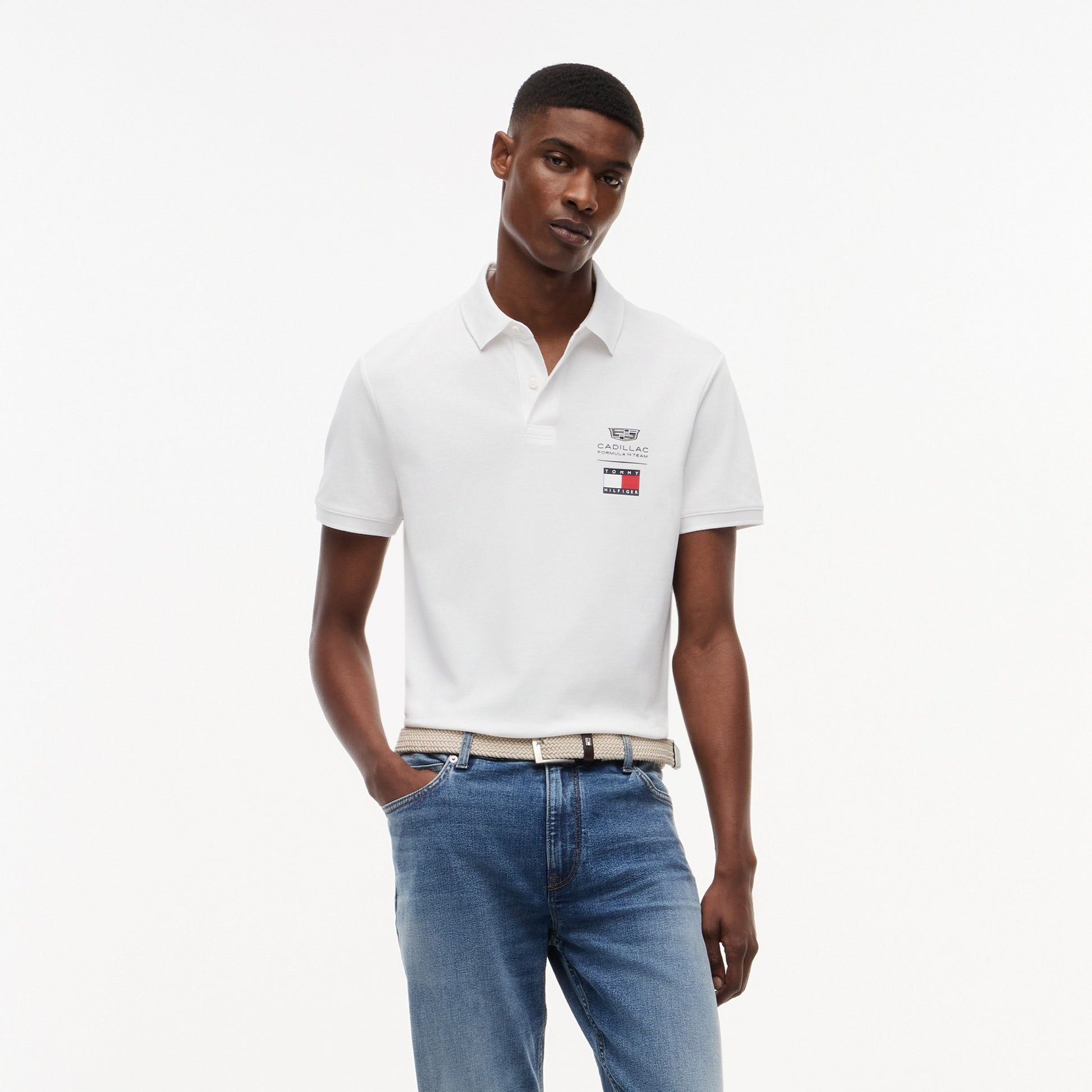 Combine American motorsport heritage with refined casual style in the Cadillac F1 x Tommy Hilfiger Logo Polo for Men in classic white. This premium men’s polo blends classic design with bold Tommy Hilfiger x Cadillac Formula 1 Team branding for standout everyday appeal.