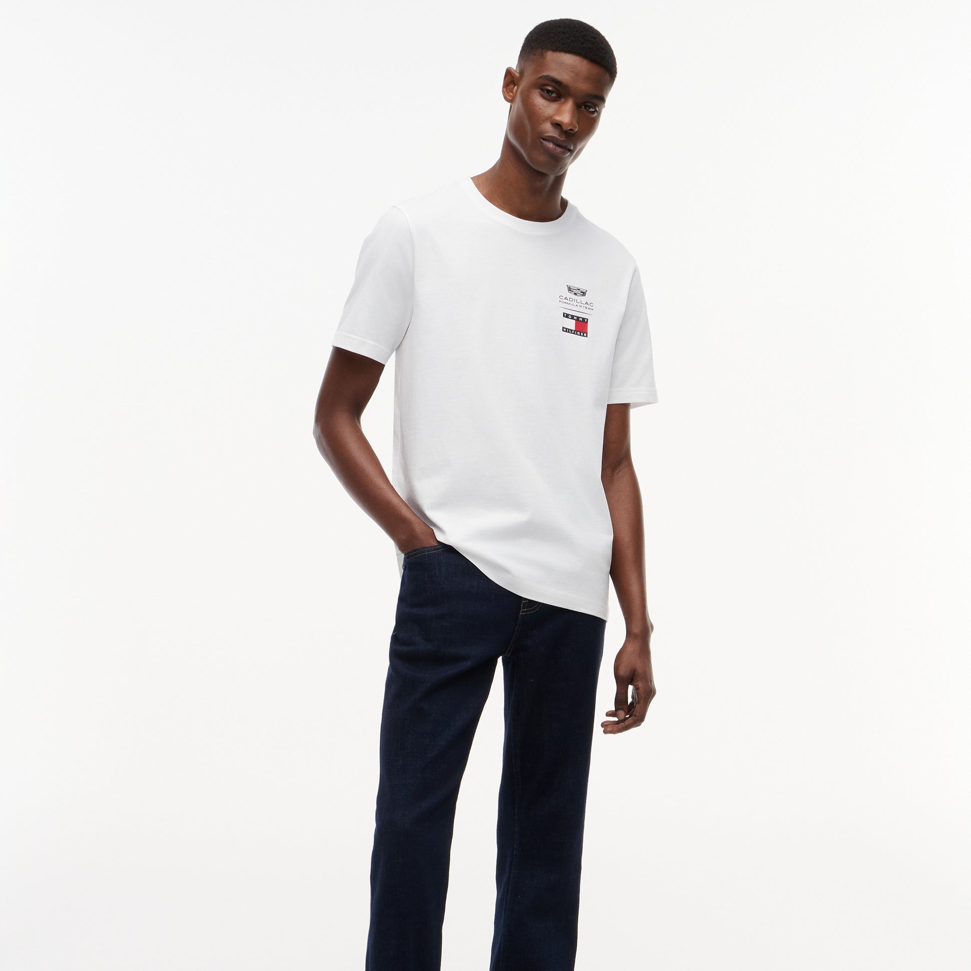 Show your racing pride with the Cadillac F1 x Tommy Hilfiger Logo Tee for Men in classic white. This premium men’s T‑shirt pairs bold Tommy Hilfiger x Cadillac Formula 1 Team branding with timeless casual style.