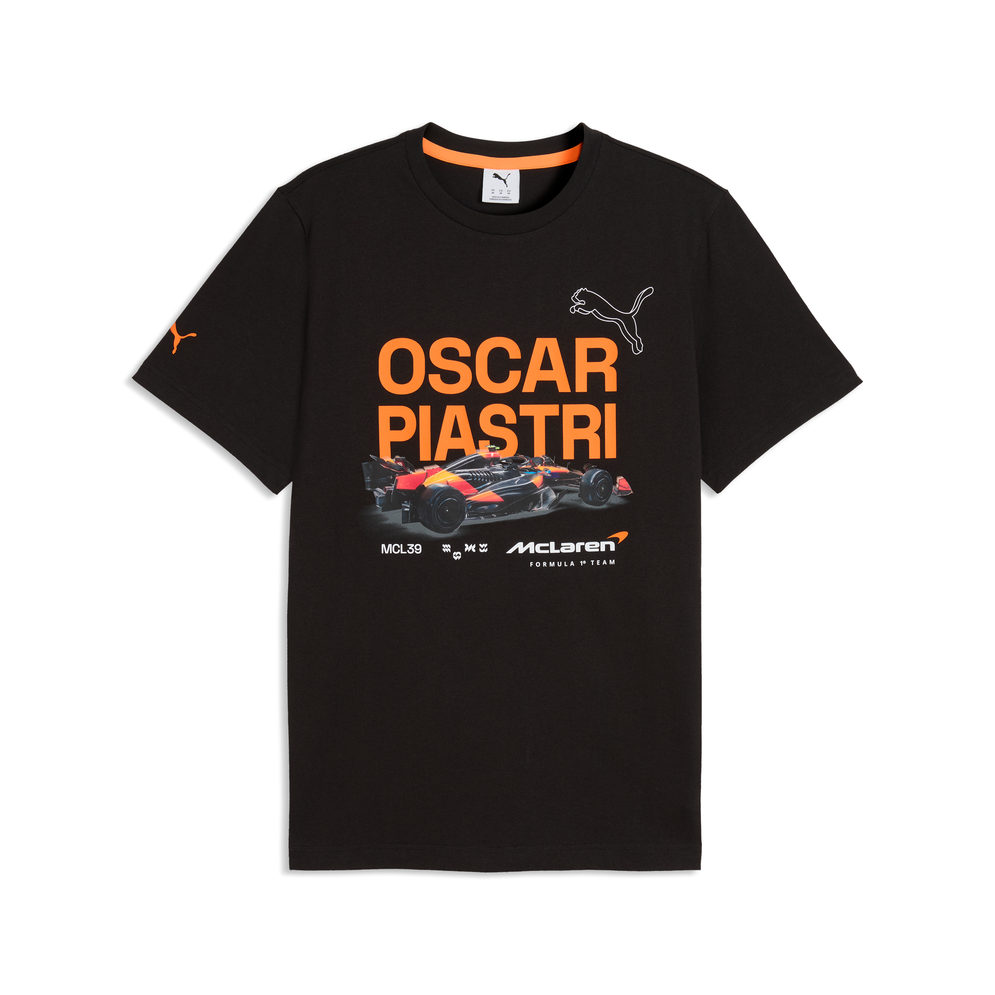 Support McLaren Racing and Oscar Piastri with this official team T-shirt in a sleek black finish. Featuring authentic team and driver branding, it offers a comfortable men’s fit perfect for everyday wear or race weekends.