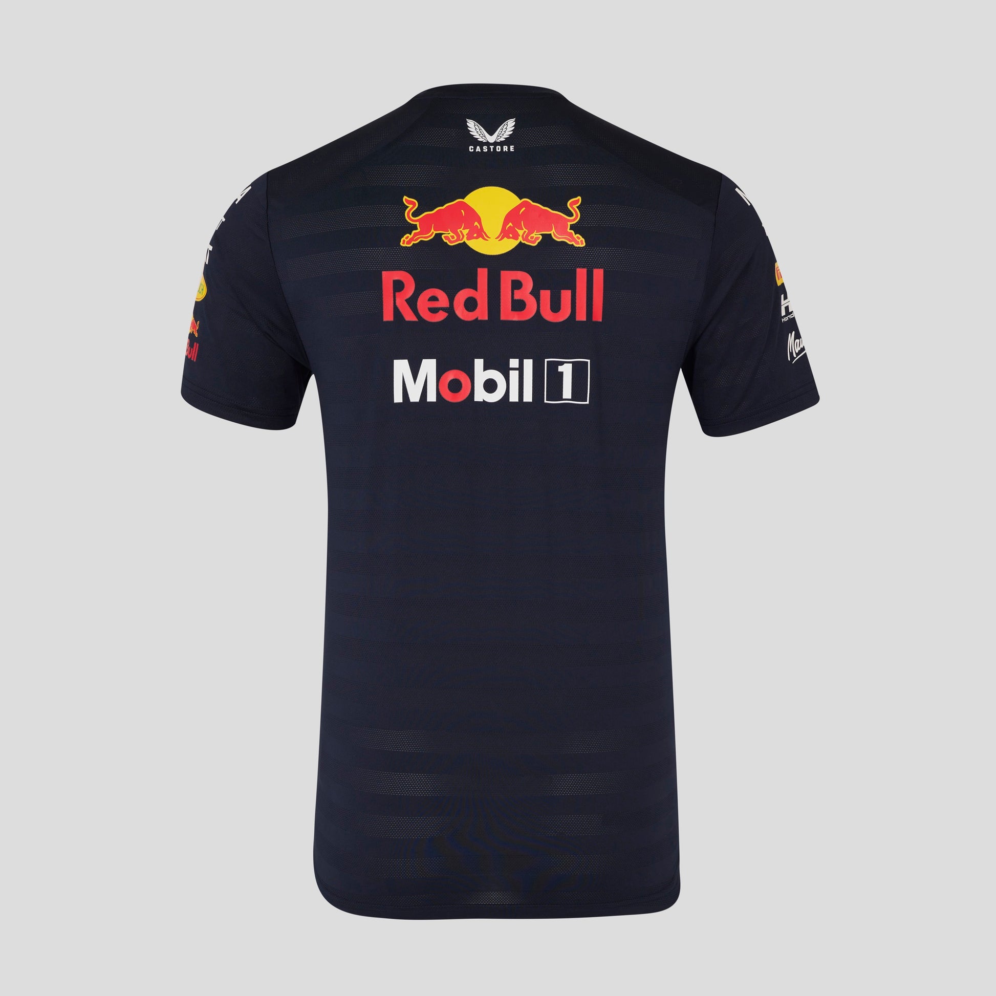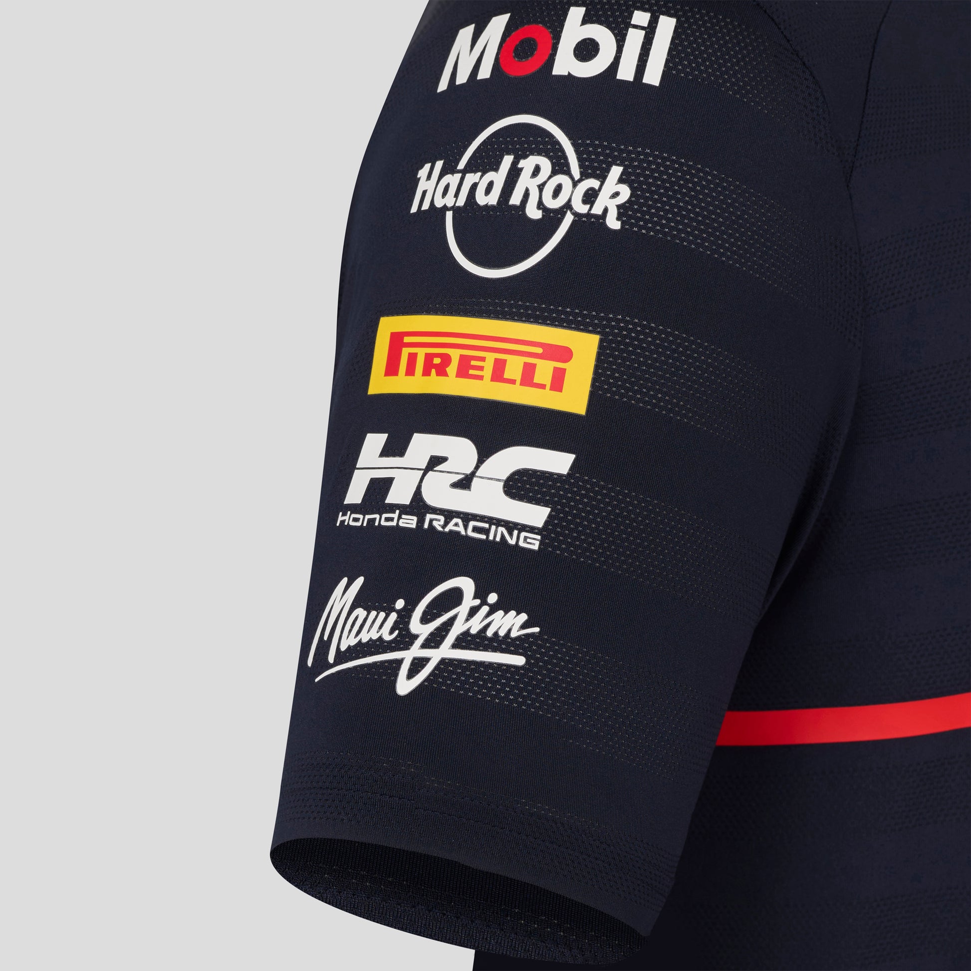 Oracle Red Bull Replica F1 Set Up Tee Shirt. Mens set up tee, the front features the Red Bull team banner, ORBR team Logo and Tag Heuer official sponsor badge. The back of the polo shirt features the iconic charging Bulls logo.