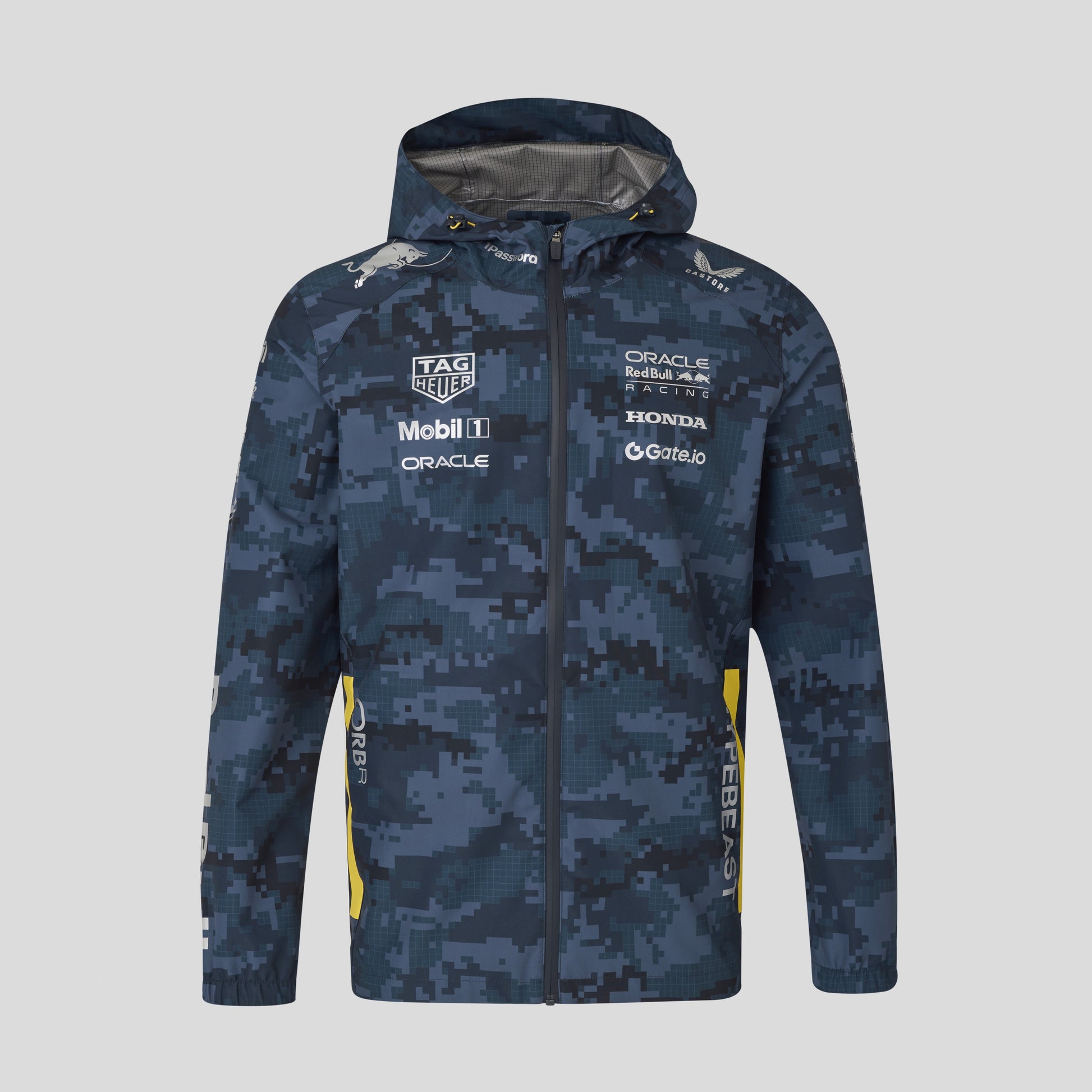 Elevate your race-day style with the Red Bull Racing x Hypebeast Team 2025 Rain Jacket in Navy, a bold fusion of motorsport heritage and streetwear edge. Designed for both performance and everyday wear, this premium product features  Red Bull Racing and Hypebeast co-branding, making it the ultimate statement piece for F1 fans and fashion-forward individuals alike.