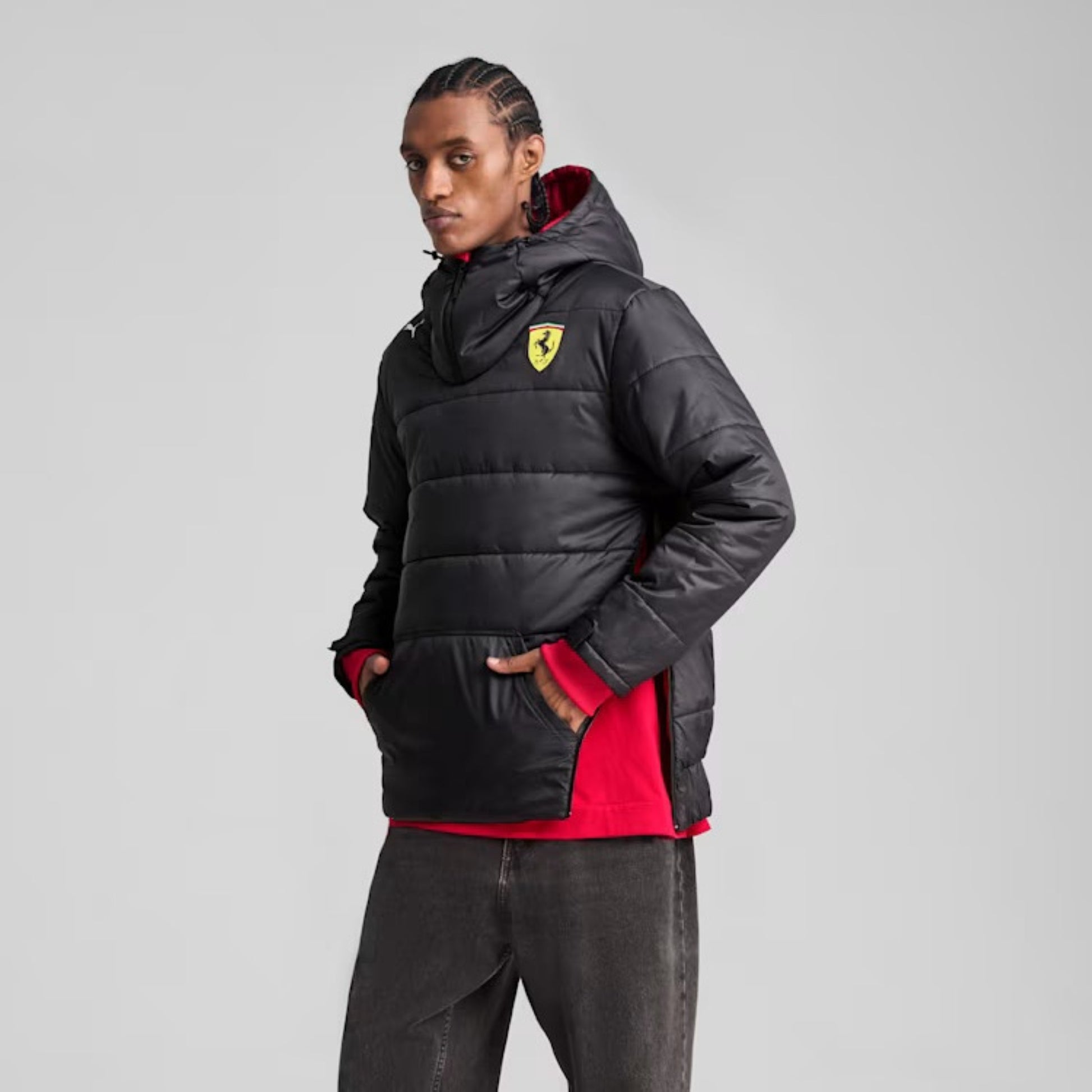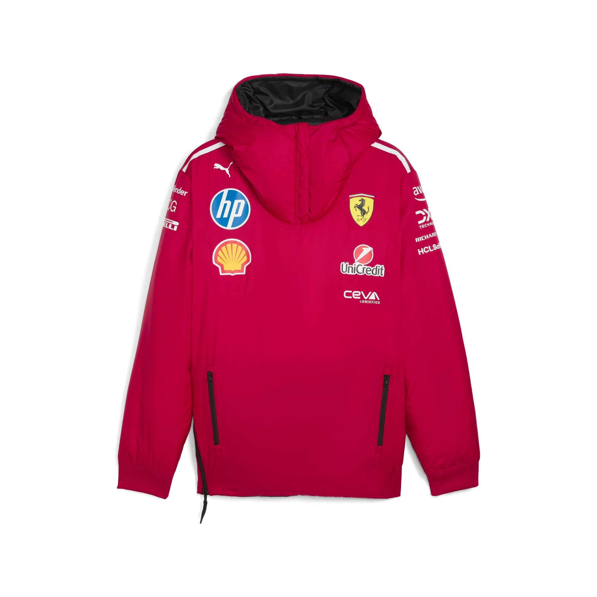Two for one with this official Ferrari F1 reversible jacket. Choose from full on Tifosi mode in the team's iconic Rosso (red) with Ferrari team and partner logos, or switch it up and go for a cool black with more subtle Scuderia Ferrari branding. Perfect for fans of the prancing horse.
