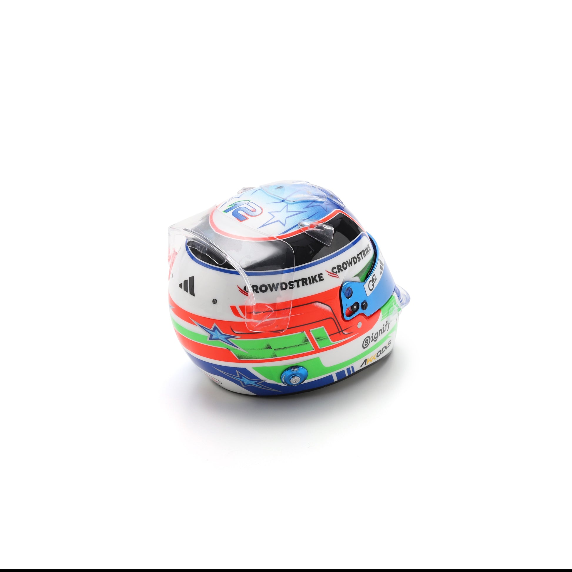 The new kid on the block, Kimi Antonelli, is making waves as he continues his first 'rookie' season in F1 after replacing the great Lewis Hamilton at Mercedes. Celebrate his inaugural F1 season with a collector's edition 1:5 scale mini helmet worn by Kimi during 2025 F1 races.